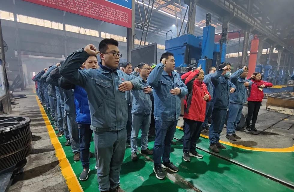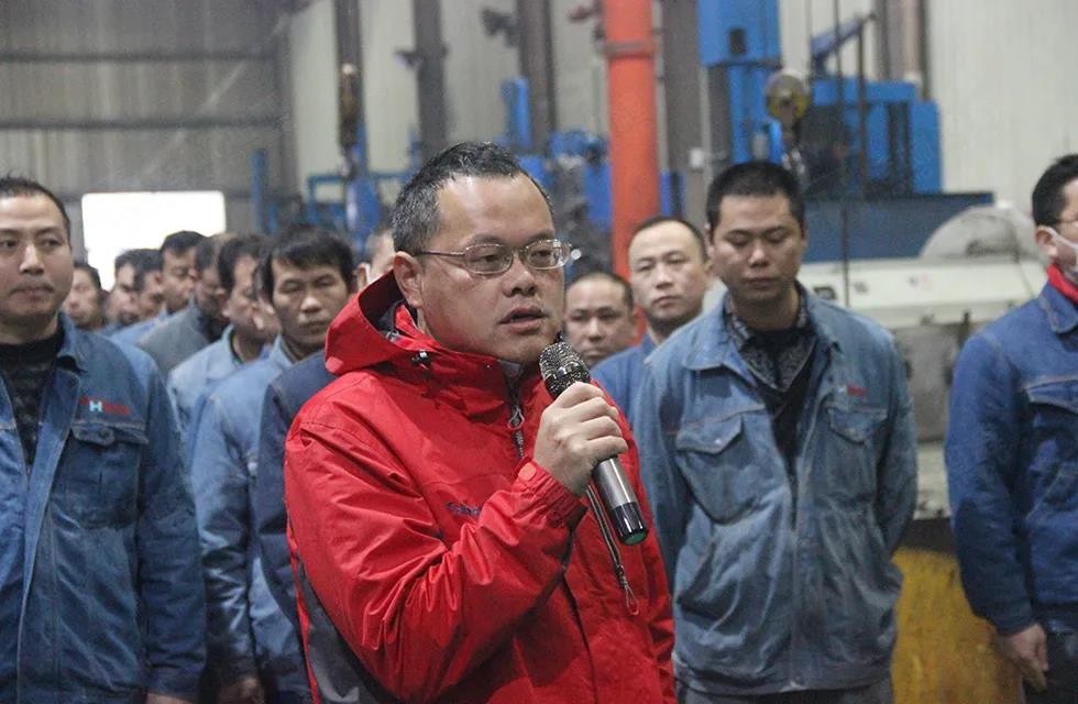 2月7日8時18分,一時鞭炮齊鳴,點(diǎn)燃在場所有人的斗志與激情。眾人整齊列隊(duì),莊嚴(yán)迎來農(nóng)歷新年的第一次整體晨會。副董事長容北國、總經(jīng)理林均發(fā)表講話,在車間中展雄心,鼓干勁創(chuàng)未來。