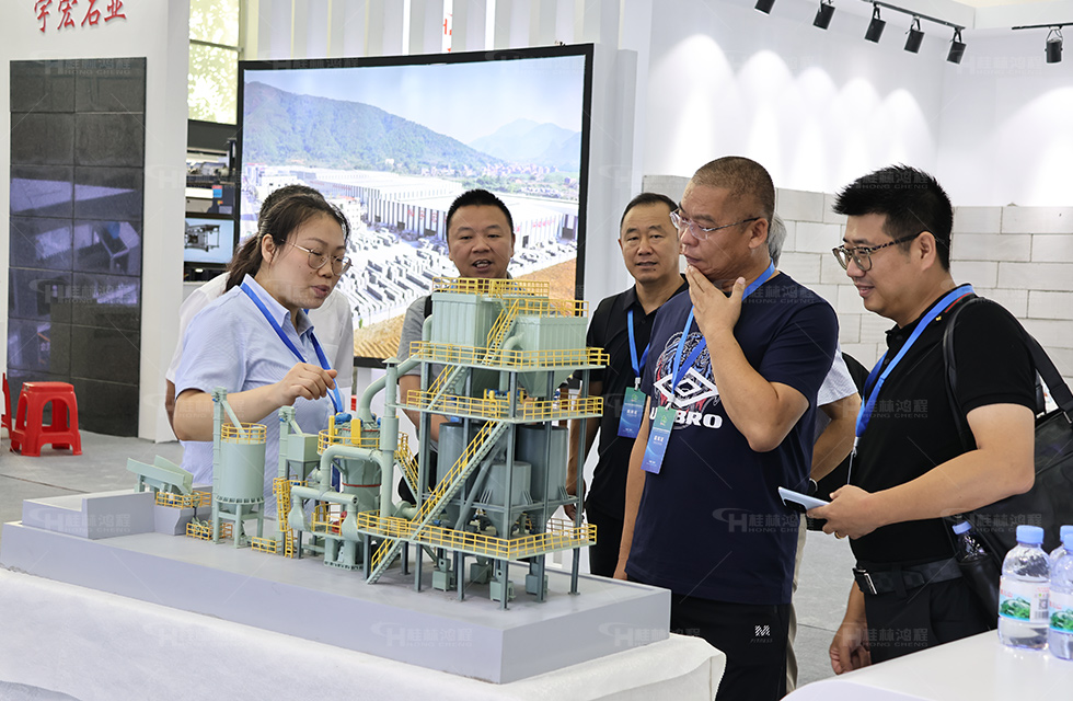桂林鴻程作為專業的粉體加工整套解決方案提供商,堅持“以客戶為中心”的經營理念,堅持綠色低碳發展,不斷在碳酸鈣磨粉領域創新制造,為客戶創造更大價值。在本次展會上,鴻程展示了HLM立式磨、HLMX超細立式磨、HCH超細環輥磨、HC系列擺式磨等磨粉科技及裝備。賀州是全國超大的重鈣粉體和人造崗石生產基地,鴻程立足于賀州碳酸鈣行業發展,精準發力,提高產品質量,并為客戶提供一站式總包服務,使得鴻程磨粉機系列產品也迅速在賀州市場廣泛應用。